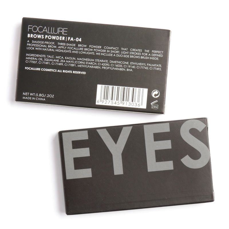 Focallure Perfect Brow Powder is a Three-shade compact that creates beautiful and natural brow effects. This sheer to medium opacity powder includes the antioxidant Vitamins C and E. This emollient formula is transfer resistant and keeps brows supple. This product is available in 3 three-tone shades.